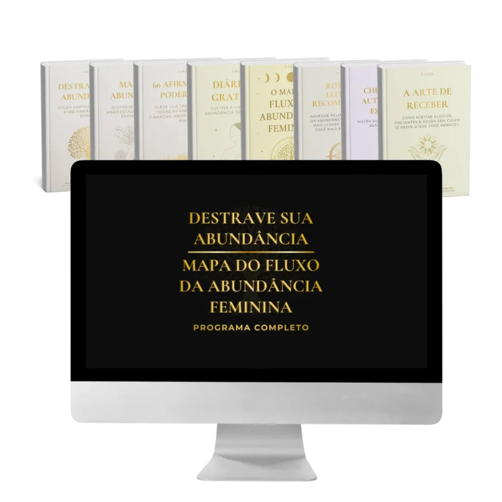 O Mapa do Fluxo da Abundância Feminina é o nosso guia prático e intuitivo para curar culpa, sobrecarga emocional e fortalecer sua energia feminina receptiva com leveza. Acompanha 3 bônus: Checklist de Autocuidado Essencial; Guia A Arte de Receber; Rota Personalizada: Sua Jornada é Única.